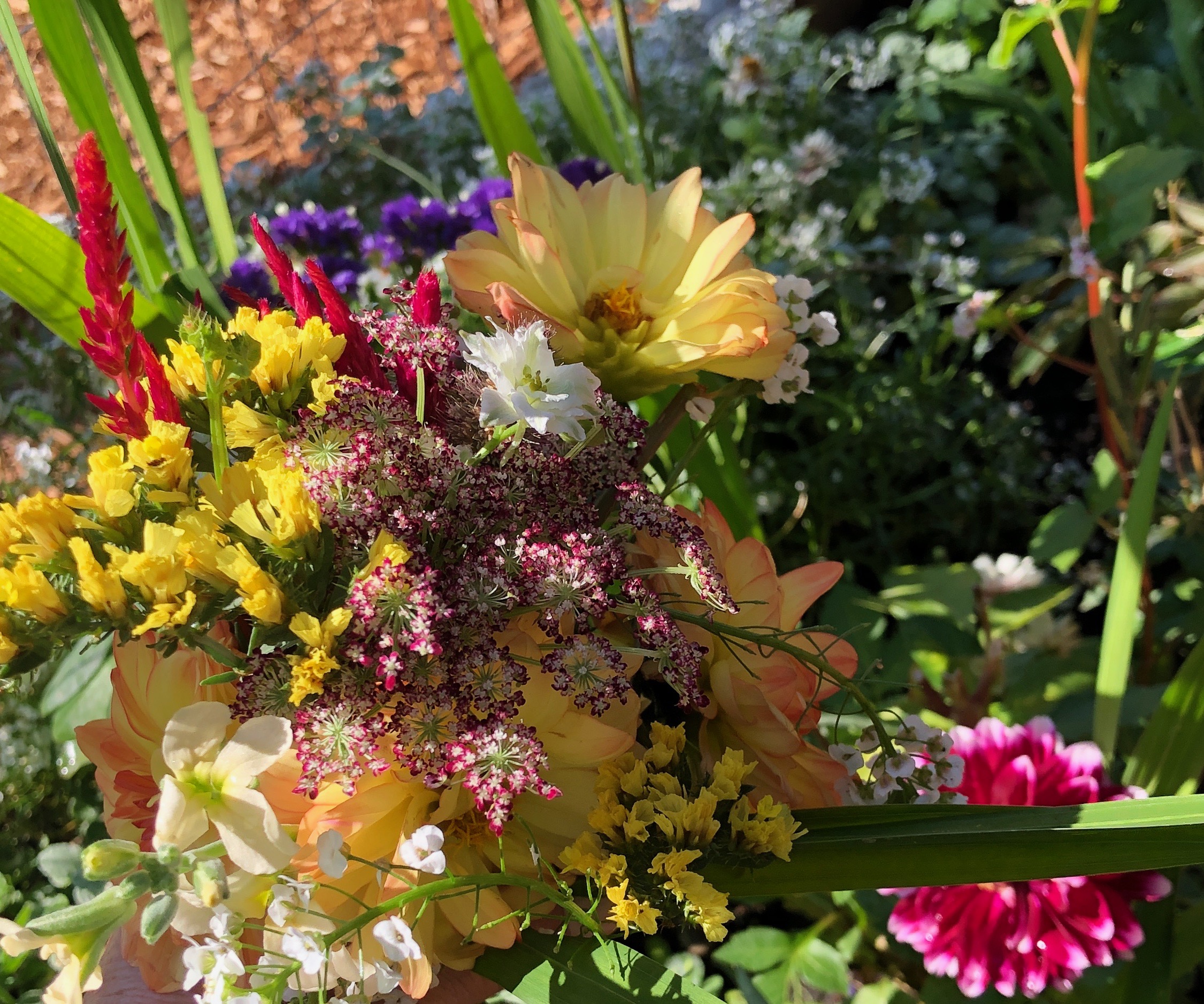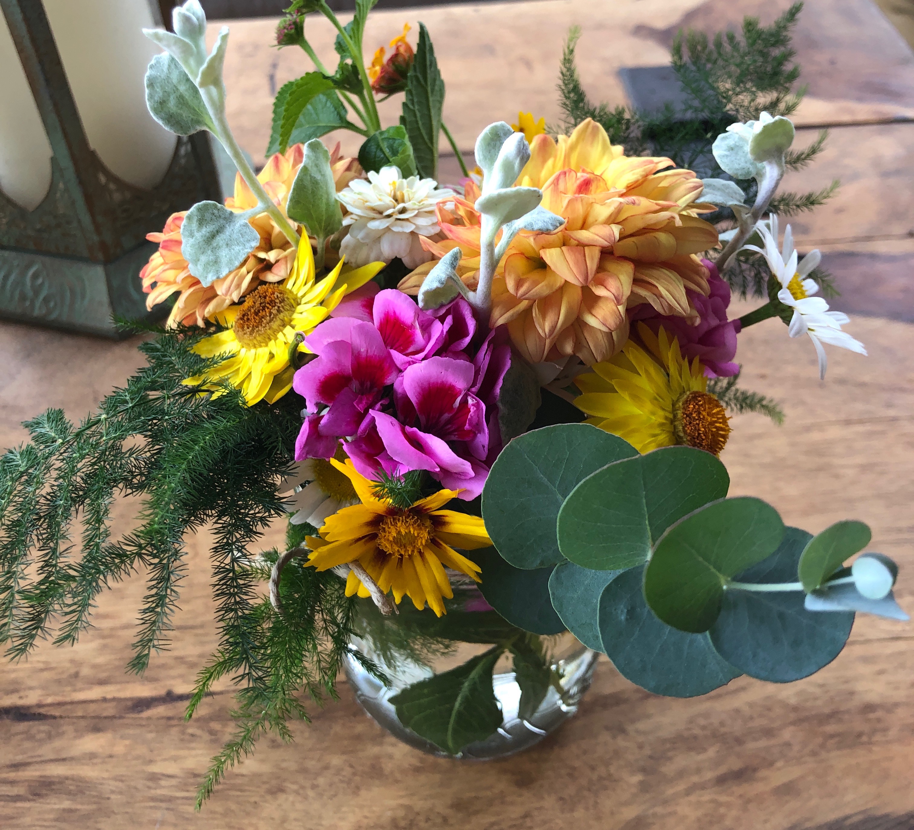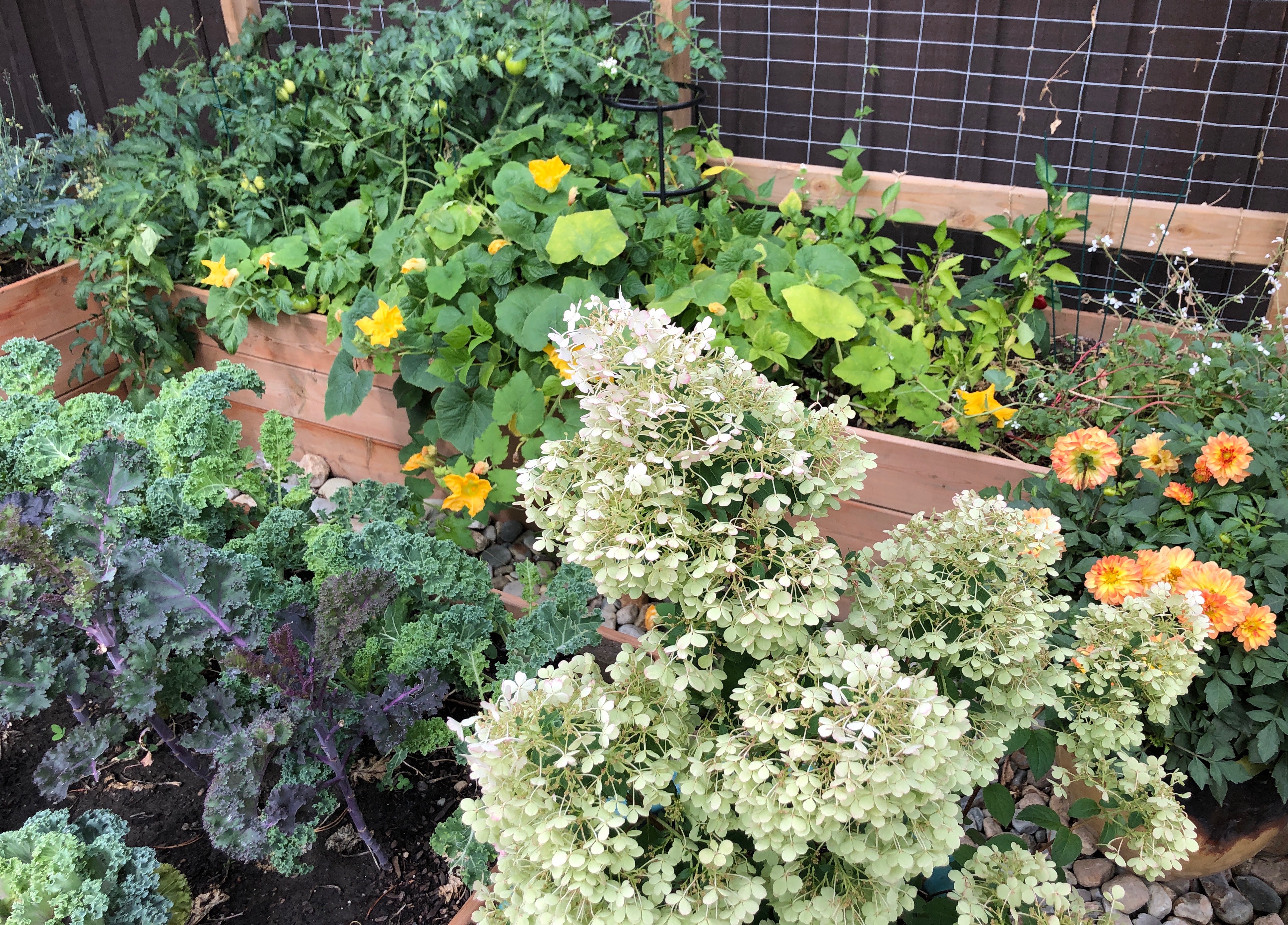 Delicate dahlias mingle with cherry tomatoes and leafy kale. Golden marigolds shine alongside lillies, zinnia and fragrant vintage. Budding morsels of cauliflower and broccoli nestle in their frilly leaves… well I admit, the gophers did enjoy nibbling the cauliflower! My mountain gardens are gloriously abloom and verdant, and I’m surprised to find that I haven’t yet written of my cherished patch of vegetables and flowers. They’ve been an oasis during these unsettling times.