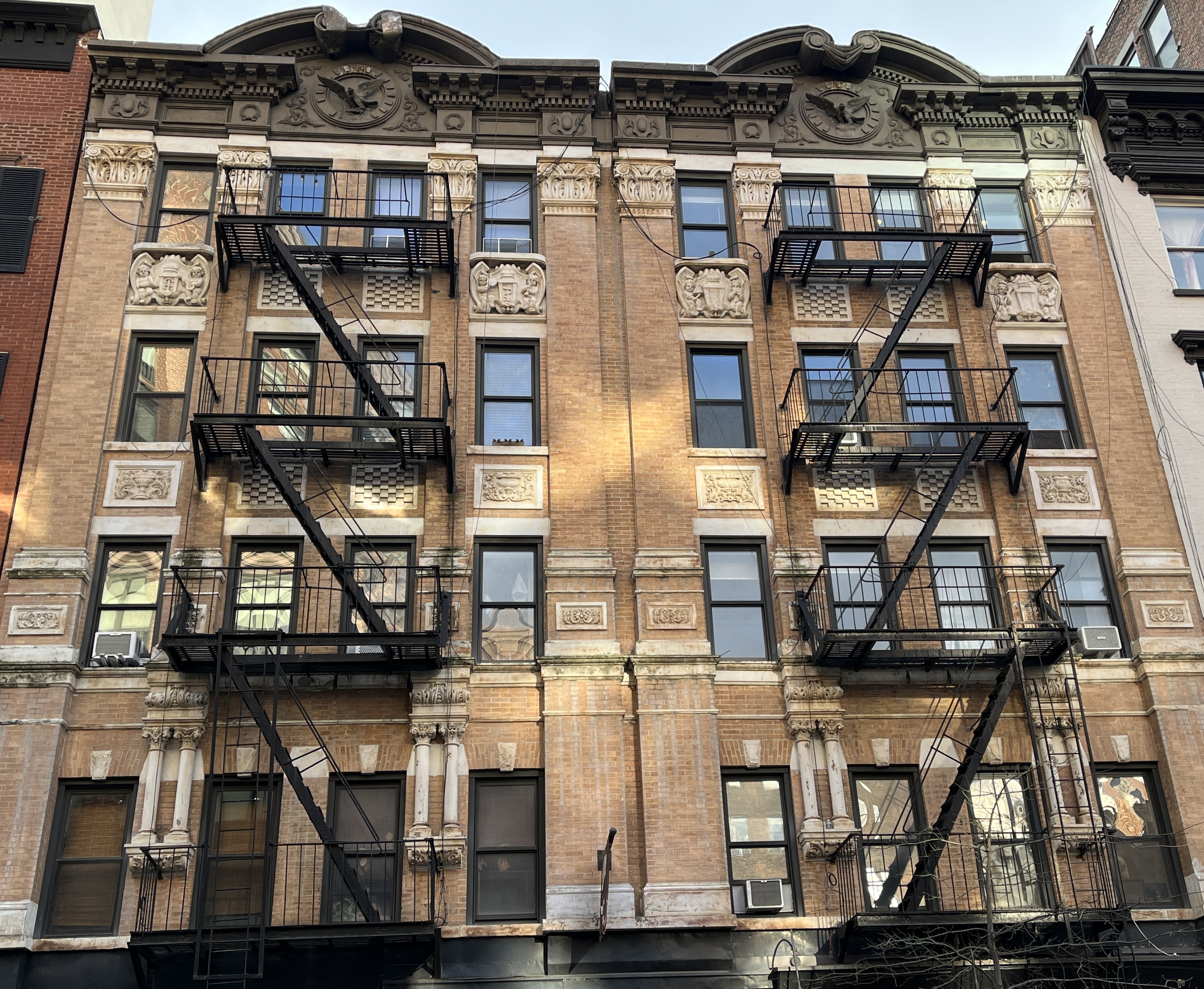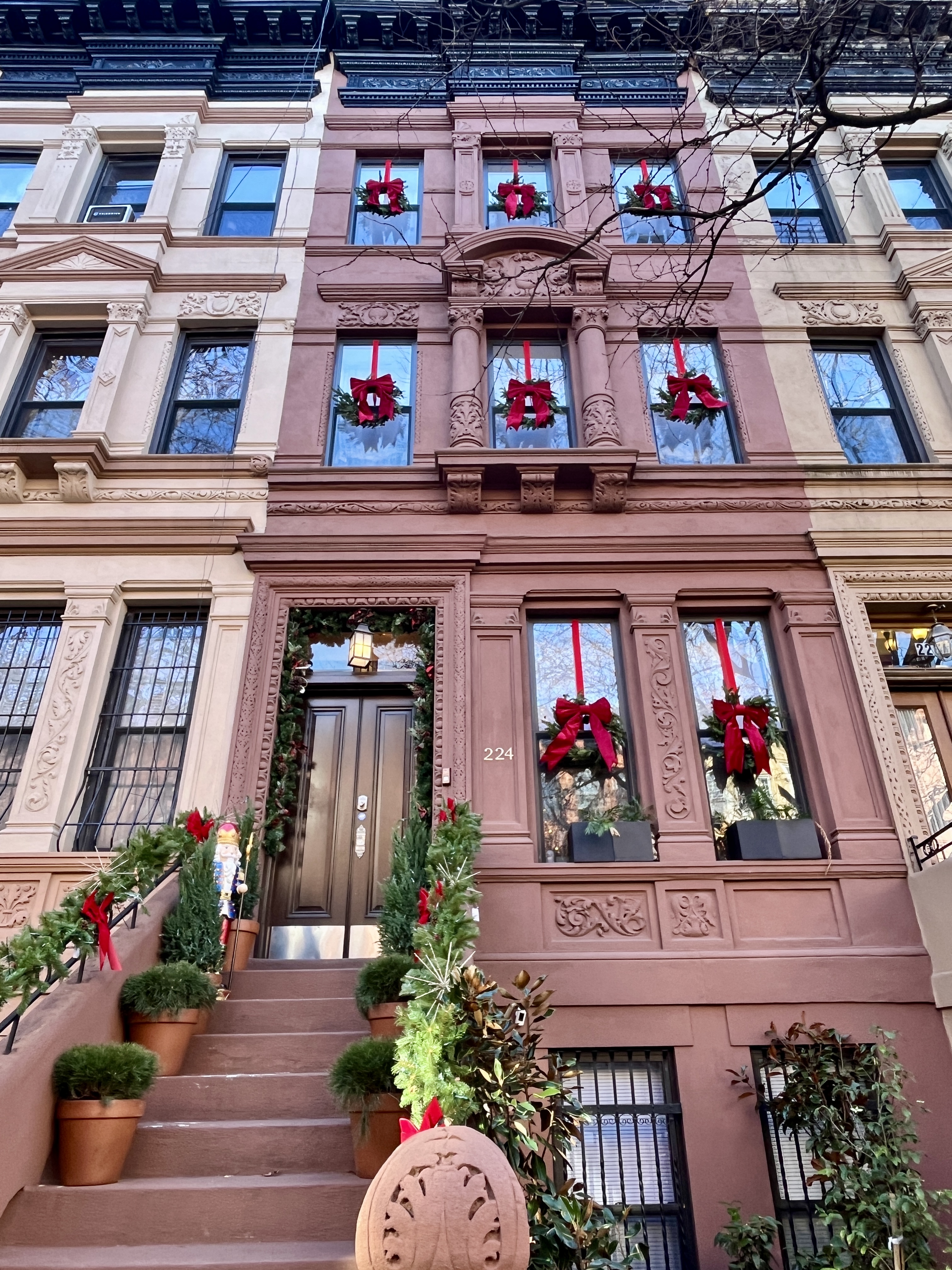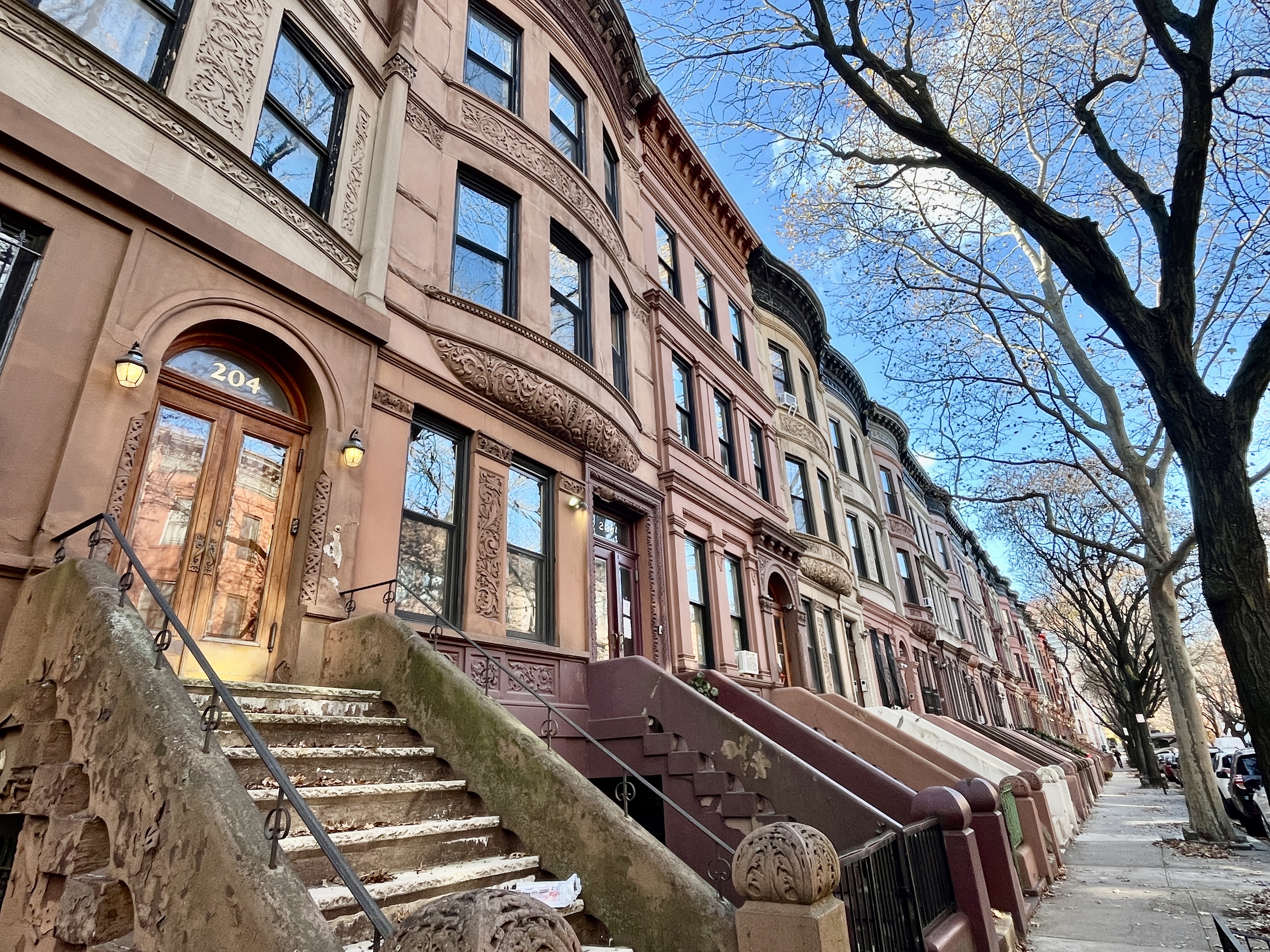 The salmon-hued and wide stoops of Harlem townhouses, nestled along storied leafy streets.